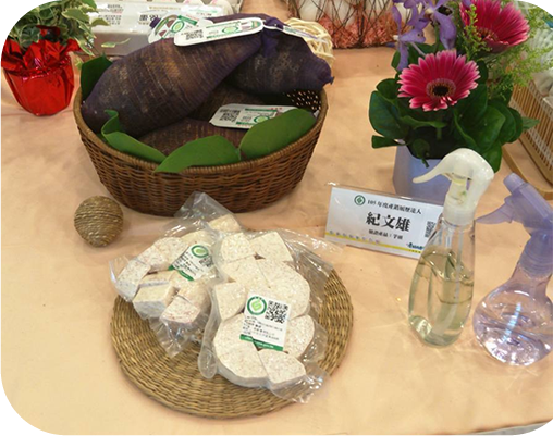 利用大豆採收時的遺豆及殘枝落葉來滋養大地,讓豆科植物的根瘤菌來固氮滋養芋頭,讓土壤恢復蓬勃岸然的生機,培育出優質香Q綿密的芋頭,讓大豆的皂素來驅逐害蟲使芋頭有健康的生長環境。